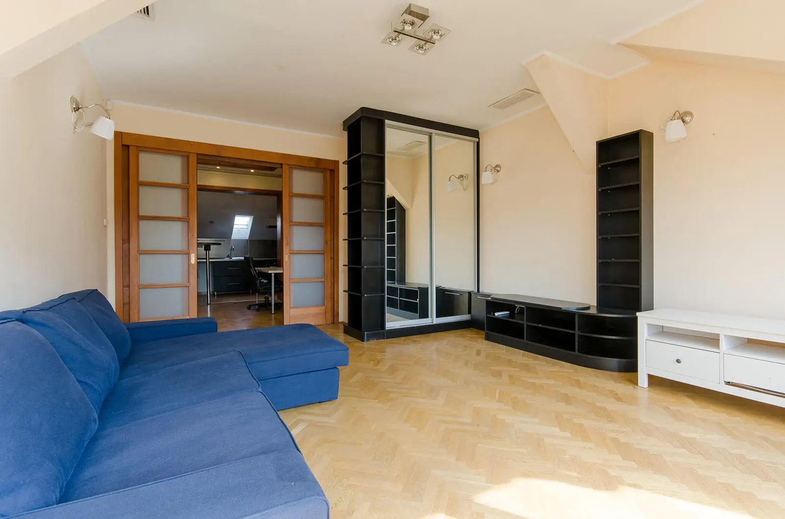 Két nagy hálószobája van plusz egy nagy nappali, egy konyha spájzzal, két fürdőszoba és egy kisebb szoba. Kiváló alaprajzú ingatlan.