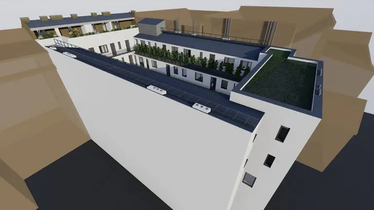 A lakásokat két új emeleten alakítjuk ki emellett teljesen felújítjuk a társasház minden részét.